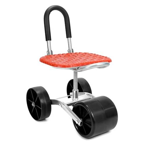 Der fahrbare Gartenwagen von Monstershop punktet mit einer hohen Maximalbelastung von 150 kg sowie einem robusten Metallsitz. Am meisten gefällt uns allerdings, dass sich der Sitz bei Bedarf drehen und sogar höhenverstellen lässt.