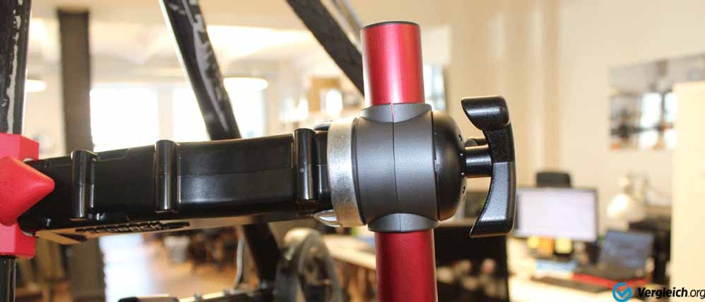 Die Klemmung hält das Fahrrad sicher, benötigt aber mehr Kraft als bei hochwertigeren Modellen. Auch die Höhenverstellung ließ in puncto Fixierung zu wünschen übrig, da sie nach häufigem Verstellen nachgab.