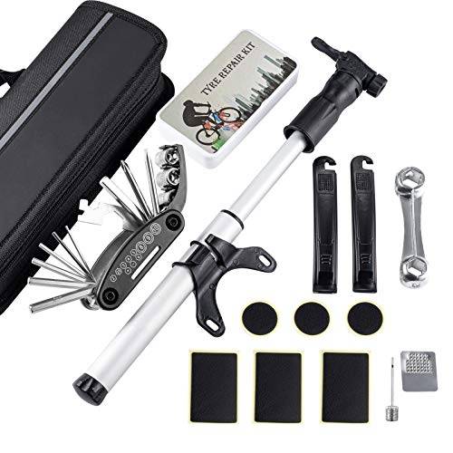 In unserem Fahrrad-Reparaturset-Vergleich stehen Ihnen die besten Fahrrad-Reparatur-Kits zur Auswahl. Die meisten dieser Sets kommen inklusive Flickzeug, Reifenheber, einer nützlichen Metallraspel zum Aufrauen des Gummischlauchs, einem vielseitigen Multitool sowie Innensechskantschlüsseln in unterschiedlichen Größen. Einige Sets heben sich besonders hervor, da außerdem eine kleine Luftpumpe beigelegt ist.