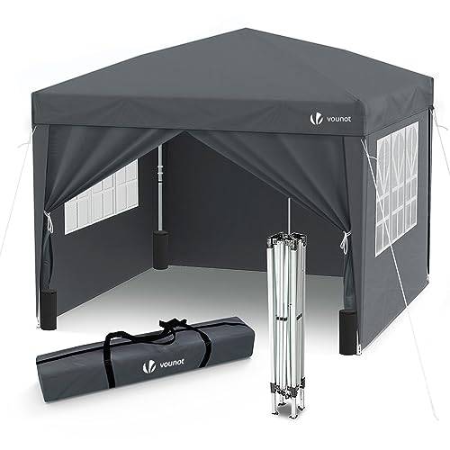 Wenn Sie sich für einen Faltpavillon mit vier Seitenwänden entscheiden, dann sollte ein Seitenteil mit einer Tür ausgestattet sein, damit Sie den Faltpavillon einfach betreten können. Die Tür wird entweder mit einem Reißverschluss oder Klettverschlüssen geöffnet und geschlossen. Zudem finden Sie Modelle mit einer aufrollbaren Tür, die jedoch etwas umständlicher in der Handhabung ist.