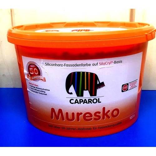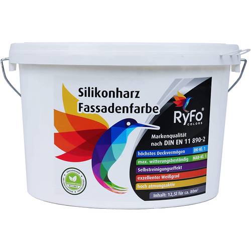 Silikonharz-Emulsionsfarbe | Sie wird häufig auch als Silikonharzfarbe bezeichnet und besteht aus einer Emulsion aus organischen und mineralischen Bindemitteln. Aufgetragen bildet die Silikonharz-Emulsionsfarbe einen elastischen Film, der leichte Risse im Fassadenputz überbrückt. sehr guter Schutz vor Feuchtigkeit |