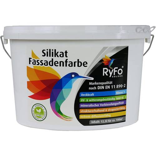 Silikatfarbe | Dieser Farbtyp wird auch Keimfarbe (nach ihrem Erfinder), Mineralfarbe oder Wasserglasfarbe genannt. Als Bindemittel wird Kaliwasserglas, eine klare, aus Quarzsand, Pottasche, Kohle, Soda und Wasser hergestellte Lösung, verwendet. Da diese Farbe stark alkalisch ist und eine ätzende Wirkung hat, sollte sie nur vom Fachmann und nicht von Laien oder Heimwerkern verarbeitet werden. Aus diesem Grund ist sie in der Regel nicht im Baumarkt erhältlich. Auch in unserem Fassadenfarben Text 2025 haben wir auf Silikatfarben verzichtet. sehr langlebig |