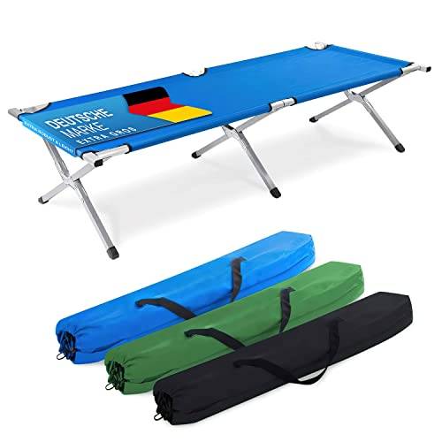 Das beste Feldbett nützt nichts, wenn Ihre Füße nachts in der Luft baumeln. Wählen Sie die Größe des Feldbetts nicht zu knapp: viele kleingewachsene Käufer genießen ein Feldbett-XXL ganz besonders, weil Sie die große Liegefläche zum Drehen und Wenden in der Nacht zu schätzen wissen. Der Nachteil von XXL-Feldbetten ist das höhere Gewicht und der verbrauchte Stauraum. Wenn Sie weder ein Feldbett-XXL (Maße: 210 x 72 x 45 cm) noch ein normales Feldbett (Maße: 190 x 70 x 45 cm) als passend empfinden, könnte ein Feldbett-XL (Maße: 195 x 70 x 45 cm) als Kompromiss genau das Richtige für Sie sein.