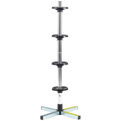 Bei einem stationären Reifenbaum wird das Alurohr mit den vier Auflagetellern senkrecht mit einem Metallkreuzständer verschraubt, mit dem der Felgenbaum stabil auf dem Boden stehen kann. Achten Sie darauf, dass Sie die Stelle, an der Ihr Felgenbaum stehen soll, ausgewählt haben, bevor Sie die Autoreifen anbringen, denn ihn dann noch nachträglich zu verschieben, dürfte sich als sehr schwierig erweisen und kann schnell dazu führen, dass er das Gleichgewicht verliert und die Reifen Sie beim Sturz verletzten könnten.