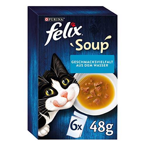 Platz 4 | Purina Felix Soup Geschmacksvielfalt aus dem Wasser | ca. 18 € | ausgewachsene Katzen | sehr gute Akzeptanz | ![]() ![]() | |