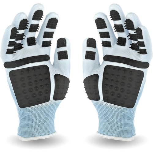 Wie im Vergleich der Fellpflege-Handschuhe auffällt, haben einige Modelle zwei Arten von Noppen. Zusätzlich zu den längeren Noppen zum Bürsten verfügen sie in der Handfläche über kürzere, die einen besonderen Massageeffekt haben sollen. Die Durchblutung durch Massage anregen können jedoch auch die anderen Fellpflege-Handschuhe für Haustiere.