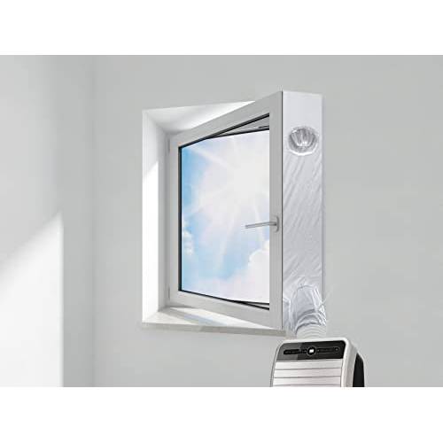 Eine Fensterabdichtung für mobile Klimageräte ist schnell montiert. Alles, was Sie zur sicheren Befestigung benötigen, befindet sich für gewöhnlich im Lieferumfang. Um die richtige Größe für den Fenstereinsatz für die Klimaanlage zu wählen, müssen Sie alle Seitenlängen des Fensters addieren.