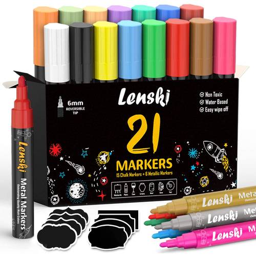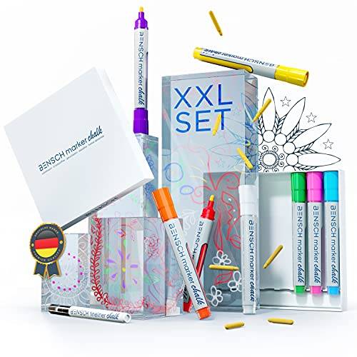 Klassische Kreidemarker sind weiß und eignen sich besonders gut, um zum Beispiel dunkle Oberflächen wie Kreidetafeln, Tafelfolie oder Kunststoffbecher zu beschriften. Zum Malen von bunten Fensterbildern passen allerdings besser Sets mit vielen leuchtenden Farben. Diese enthalten eine Auswahl von acht bis zu 24 Farben.