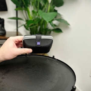 Die Transporttasche in Schwarz des Zeiss Terra ED Pocket 10×25 schützt auch durch ihre kompakte Form sehr gut. Dafür bleibt aber wenig Raum für Zubehör.