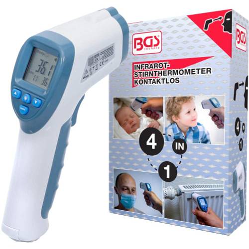 | Stirnthermometer (Infrarot) | Dieses Thermometer wird in einigem Abstand zum Körper über die Stirn gefahren. Es funktioniert ohne Körperkontakt und muss daher nicht gereinigt werden. | entfällt nicht Kochen oder mit Dampf behandeln |