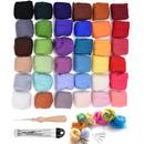 Die Glorex-Filzwolle, die uns hier präsentiert wird, ist eines von mehreren 30-g-Mixpaketen, aber es sind unter anderem auch farbsortiert 50-g-Filzwolle-Pakete erhältlich.