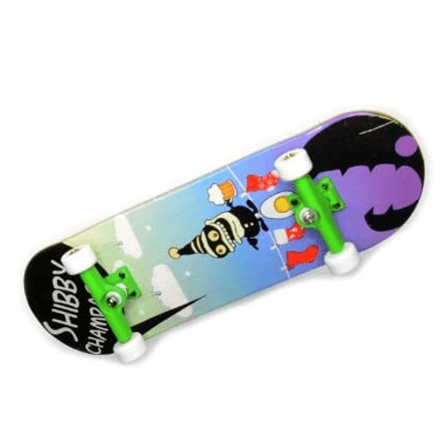 Hier sehen wir ein Toi-Toys-Fingerskateboard in Grün, es gibt dieses aber auch in Gelb und Blau.