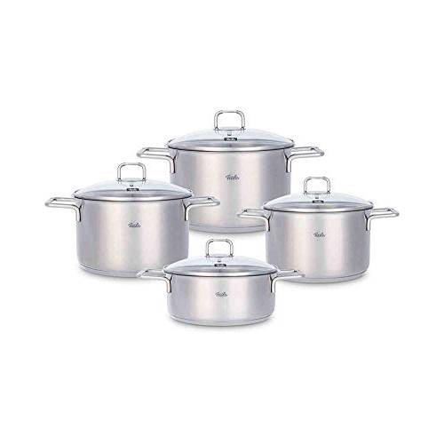 Ein Fissler-Topfset besteht aus mindestens zwei Teilen. Dabei kann es sich um verschieden große Kochtöpfe oder auch um weitere Topfarten und Pfannen handeln. In der Regel gehört zu jedem Set auch ein Stieltopf beziehungsweise eine Stiel-Kasserolle.