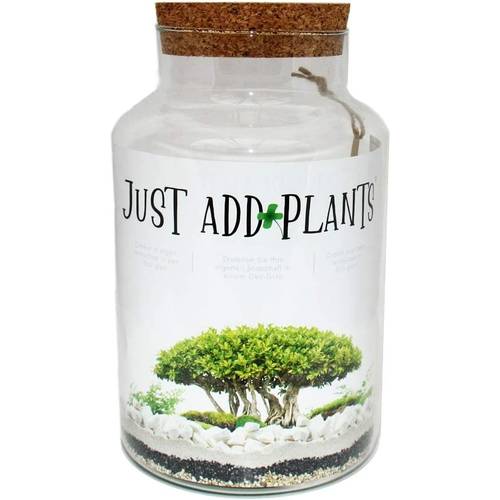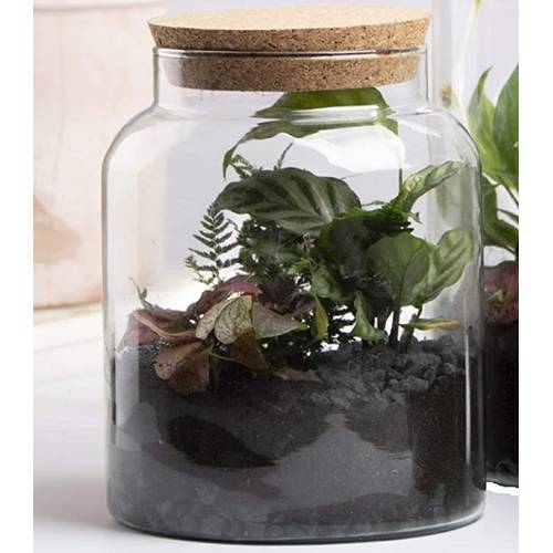 Die zweite Möglichkeit ist, einen fertigen Flaschengarten zu kaufen. Mit einem Flaschengarten-Set können Sie einen Flaschengarten einfach selber machen. Enthalten sind für gewöhnlich mindestens eine Pflanze, Moos und Substrat bzw. Erde. Einige Pflanzen im Glas enthalten auch Steine zur Dekoration.