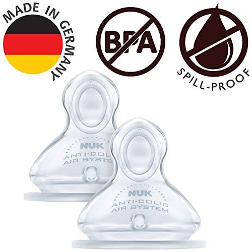 Die Nuk First Choice+ Anti-Colic-Trinksauger aus Silikon in Größe 2 für Babys von 6 bis 18 Monaten bieten durch ihre kiefergerechte Form ein natürliches Trinkgefühl, ähnlich dem Stillen. Besonders beeindruckend ist das Anti-Colic-Air-System, welches Koliken vorbeugt, indem es das Luftschlucken minimiert. Diese Sauger, speziell für Milchnahrung konzipiert, ermöglichen eine problemlose Kombination von Stillen und Flaschenfütterung, was uns sehr überzeugt hat.