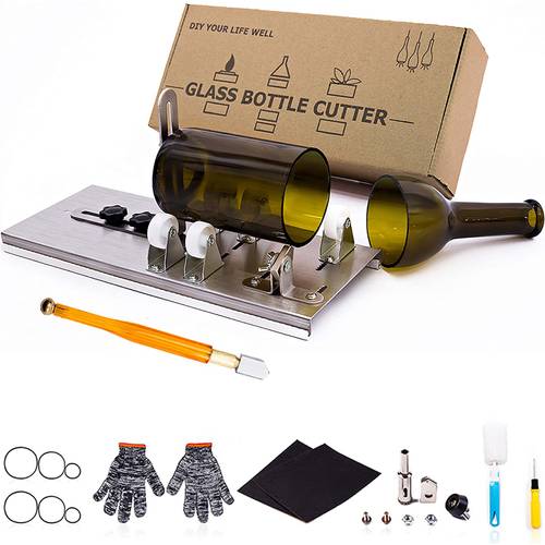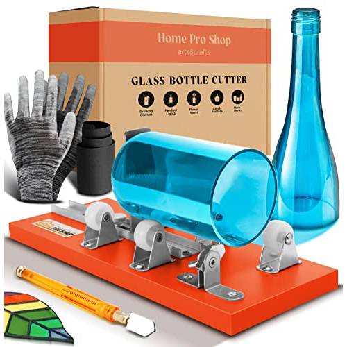 Damit das Glas beim Schneiden nicht bricht oder unsaubere Kanten hinterlässt, ist Übung erforderlich. Stationäre Flaschenschneider liegen fest auf dem Tisch und ermöglichen Ihnen eine optimale Kontrolle des Drucks, den Sie auf die Flasche ausüben müssen, um sie zu schneiden.