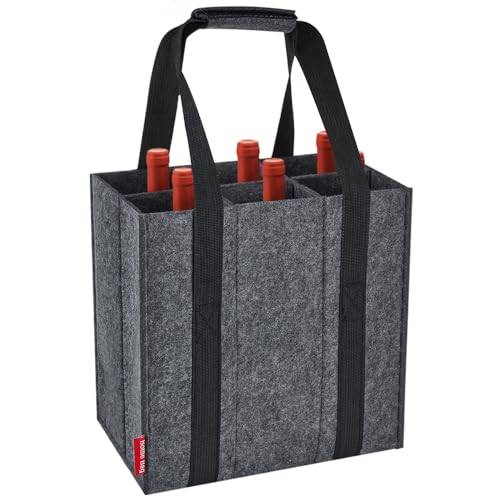 Eine nachhaltige Alternative sind Filz-Flaschentaschen, wenn sie aus natürlichen Materialien wie Baumwolle oder Hanf hergestellt werden. Durch das Verfilzen der Wollfasern bildet sich ein festes Gewebe. Es gibt sogar Filz-Flaschentaschen für 12 Flaschen. Allerdings ist das Material etwas dicker und wiegt damit häufig auch geringfügig mehr als die leichten Kunststoff-Taschen. Dafür behält Filz seine stabile Form und die leere Tasche fällt nicht in sich zusammen, was das Einräumen der Flaschen erleichtert.