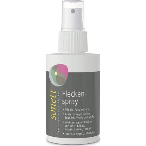 Fleckensprays finden Einsatz bei allen Arten von Textilien. Waschbare und auch nicht waschbare Stoffe können damit schonend von Flecken befreit werden. Ganz egal, ob Sie einen Fleck aus Ihrem Lieblingsshirt entfernen wollen oder aus dem Polstersessel oder Autositz – ein Fleckenspray hilft Ihnen bei der Textilreinigung weiter: zu Hause, im Auto und unterwegs. Wenn Sie beim Essen sind, eine Unachtsamkeit und ein Tropfen vom Rotwein oder der Soße landet auf Ihrem Shirt oder Ihrer weißen Bluse, dann ist so ein Fleckenspray ein unentbehrlicher Helfer. Für unterwegs eignet sich der Sonett Bio Fleckenspray, der als kleiner Spray gut in nahezu jede Handtasche passt. Sollte sich so ein Malheur ereignen, zum Beispiel mit Soßen oder stark färbenden Getränken wie Tee, Kaffee oder Rotwein, dann nehmen Sie vorsichtig zunächst mit einem Tuch das Gröbste auf. Erst danach kommt der Fleckenspray zum Einsatz.