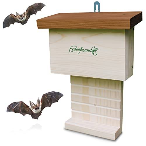 - Steht Ihnen hingegen mehr Platz zur Verfügung, können Sie sich auch für einen Fledermauskasten mit größeren Maßen entscheiden. Hier stehen den Fledermäusen bis zu zwei Nistkammern zur Verfügung. Seltener haben die großen Fledermauskästen eine Höhe von mehr als 60 Zentimetern.