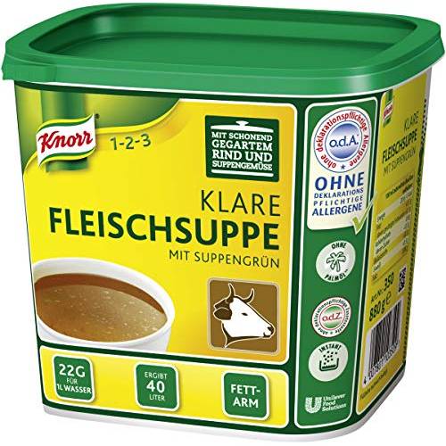 Platz 2 | Knorr klare Fleischsuppe | ca. 14 € | Rind | Pulver | ![]() ![]() | |