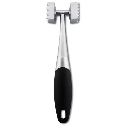Der Fleischklopfer von EDEKA hat zwei unterschiedliche Seiten, eine mit Zacken und eine flache, das ist für verschiedene Fleischsorten von Vorteil.