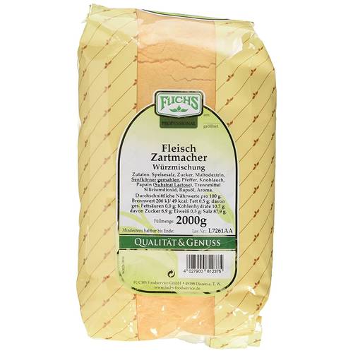 Die benötigte Menge hängt vom Fleischzartmacher-Rezept Ihres Gewürzes ab. In den meisten Fällen ist jedoch eine kleine Menge bereits ausreichend. Anschließend können Sie das Fleisch nach Belieben weiter würzen.