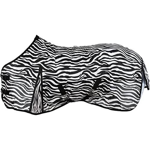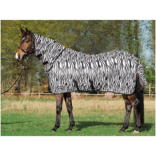 Dieser Effekt kann durch eine Fliegendecke mit Zebramuster noch verstärkt werden. Denn sie verwirrt die Insekten zusätzlich, sodass sie das Pferd gar nicht erst attackieren. Das gilt auch für Decken mit Fransen.