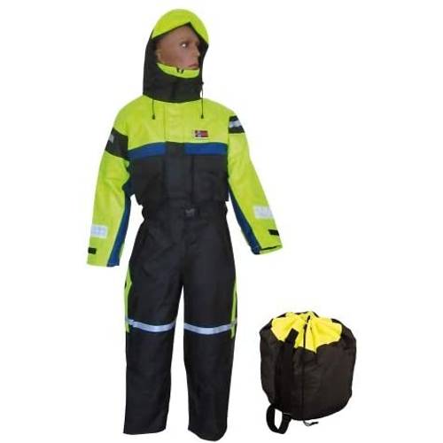 Der Schwimmanzug hat einen Auftrieb von 50 Newton und dient Ihnen in Notfällen als Schwimmhilfe. Tragen Sie über dem Anzug noch eine Rettungsweste, damit Ihr Kopf über dem Wasser gehalten wird.