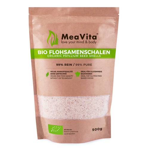 Platz 4 | MeaVita Bio-Flohsamenschalen | ca. 14 € | 1- bis 3-mal täglich 2- bis 3- Teelöffel mit reichlich Flüssigkeit | ![]() ![]() | ||