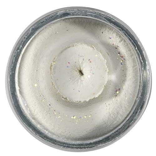Um noch sichtbarer für Fische zu sein, ist der beste Forellenteig mit Glitzerpartikeln versetzt. Einige Produkte leuchten sogar im Dunkeln.