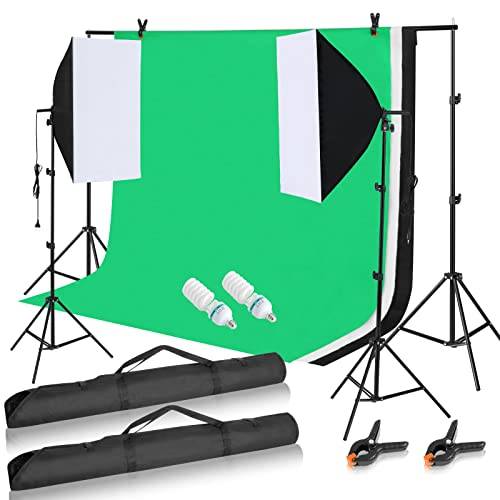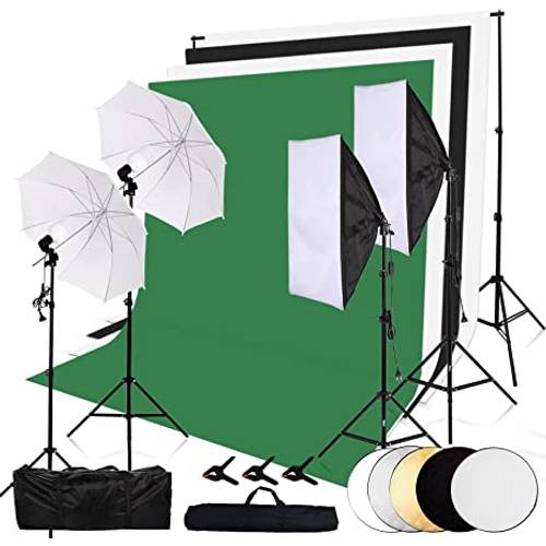 Die meisten Sets bestehen aus zumindest zwei Softboxen mit Ständer, Leuchtmittel und Tragetasche. Je nach Lieferumfang, kann das Set auch noch Hintergründe, Reflektorschirme, Befestigungsklemmen und Reflektoren enthalten.