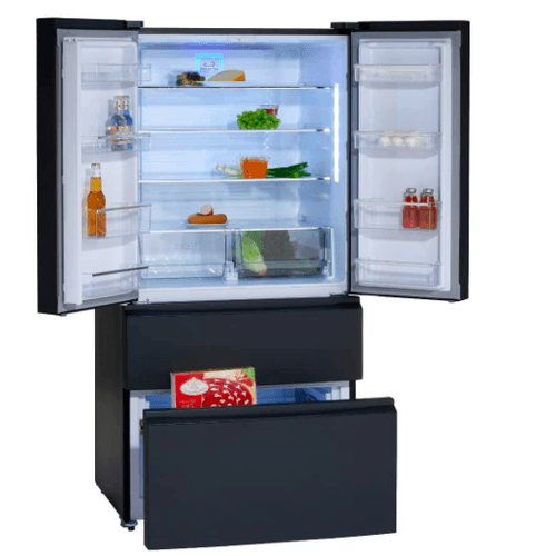 Schwarzer French-Door Kühlschrank der Marke Haier.