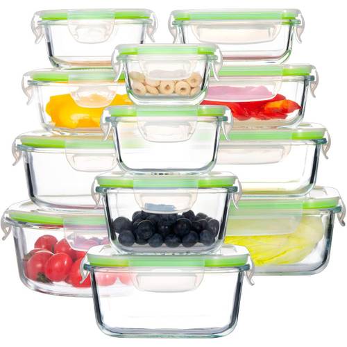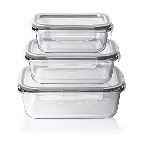 Unterschiedliche Größen sorgen dafür, dass nicht zu viel Raum im Kühlschrank eingenommen wird, wie wir es hier bei den Glasslock-Glas-Frischhaltedosen erkennen.