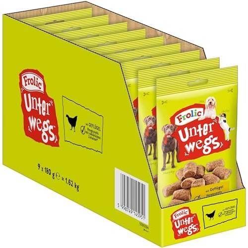 Hört Ihr treuer Weggefährte sofort aufs Wort, möchten Sie ihn mit Leckerlis belohnen? Frolic bietet verschiedene Varianten von Leckerlis an: beispielsweise „Frolic Django Knochen“, die sehr kauintensiv sind. Wenn Ihr Hund eher kaufaul ist, könnte „Frolic Unterwegs“ eine leckere Alternative sein. „Frolic Snack Sticks“ ist für Hunde perfekt, denen bei einem hohen Fleischanteil das Wasser im Maul zusammenläuft.