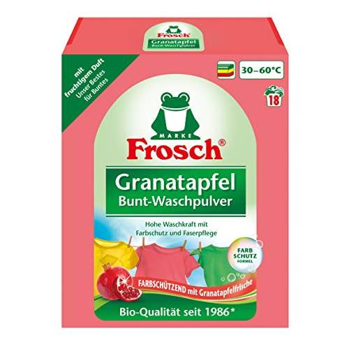 Die meisten Waschmittel von Frosch enthalten Duftstoffe. Dadurch erhält Ihre Wäsche einen angenehmen und frischen Geruch. Wer besonders großen Wert auf den Duft legt, kann sich für ein Frosch-Waschmittel mit Granatapfel-Duft entscheiden. Auch ein Frosch-Citrus-Waschmittel überzeugt mit einem frischen und langanhaltenden Geruch.