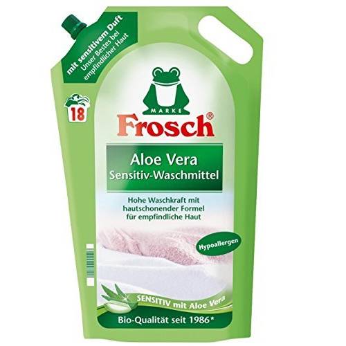Laut Herstellerangaben ist dieses Frosch-Waschmittel hypoallergen und kann daher auch für Allergiker und Menschen mit empfindlicher Haut empfohlen werden.