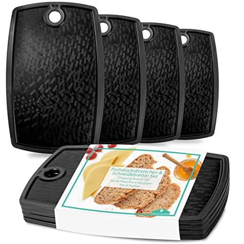 Bei Frühstücksbrettchen mit Saftrille profitieren Sie von einem besonders sauberen Tisch. Ein Haltegriff am Brettchen reduziert das Risiko des Abrutschens und somit das Verletzungsrisiko. Zudem sollten Sie beachten, dass Holzbrettchen immer von Hand gespült werden müssen.