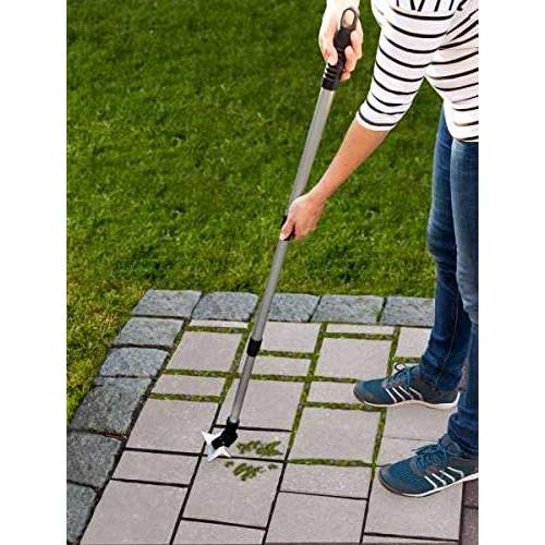 Für ein leichtes und müheloses Entfernen von Unkraut eignet sich der Unkrautkratzer Evolution von Fugenking. Wie der Hersteller erklärt, verfügt der Stiel über einen bis zu 161 cm ausziehbaren Teleskopstiel, der aufrechtes Arbeiten erlaubt – was sehr rückenschonend ist. Dank der V-förmigen Schneide lassen sich die Fugen in einem Zug reinigen. Uns gefällt, dass mit diesem Unkrautkratzer keine Kratzspuren entstehen sollen. Im Vergleich zu anderen Produkten ist dieser Unkrautkratzer mit 620 Gramm jedoch relativ schwer.