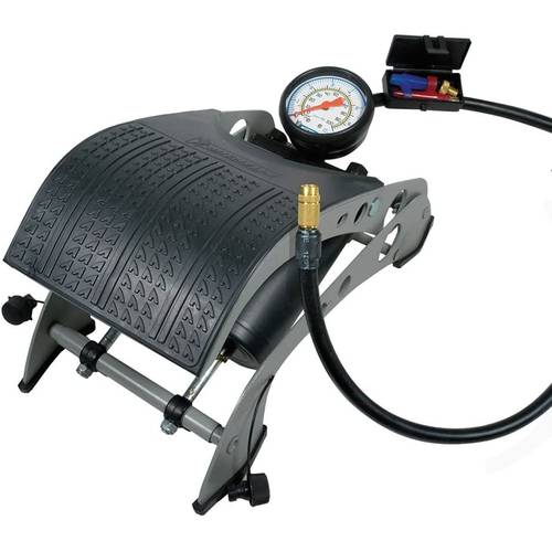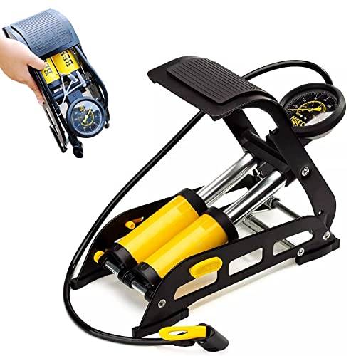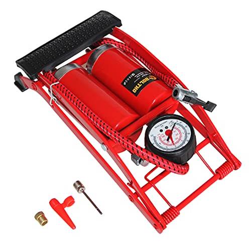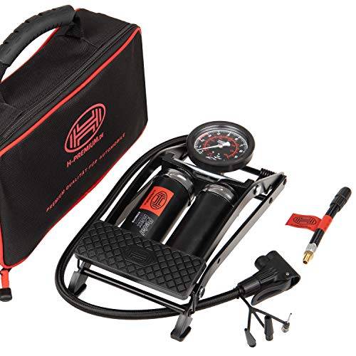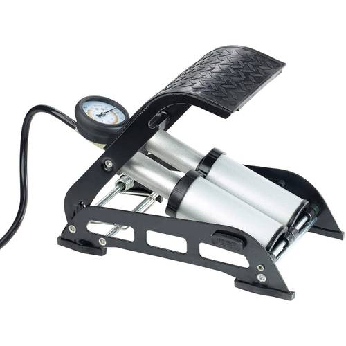 Mit einer Doppelzylinder-Fußluftpumpe lassen sich Autoreifen und Co. doppelt so schnell befüllen, als würden Sie eine Fußluftpumpe mit einem Zylinder verwenden.