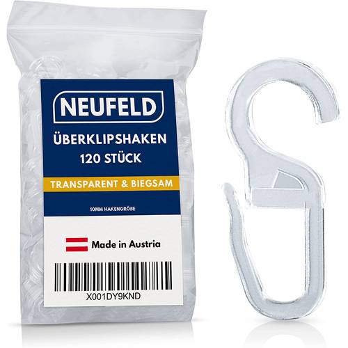 Vor dem Kauf von Gardinenhaken zum Einklicken gibt es noch ein paar weitere wichtige Merkmale, die Sie beachten sollten. So sind die besten Gardinenhaken bruchsicher. Weiterhin sind einige Gardinenhaken mit Klemme waschbar, was besonders praktisch ist, da Sie sich so einiges an Arbeit vor dem Waschen ersparen. Damit die Gardinenhaken möglichst unauffällig sind, lohnt es sich transparente Gardinenhaken oder Gardinenhaken in Weiß zu wählen. Wenn Sie eine besonders lange Gardine haben oder Gardinenhaken für mehrere Gardinen benötigen, lohnt es sich, eine große Packung mit 100 oder 120 Gardinenhaken zu kaufen.