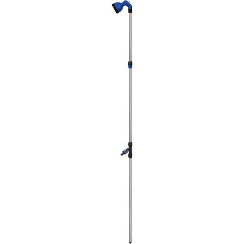 Diese Gartendusche verfügt über ein Drehventil zur Steuerung des Wassers.