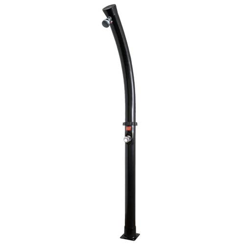 Tipp: Um eine erträgliche Wassertemperatur zu erreichen, besorgen Sie sich einen langen, schwarzen Gartenschlauch. Füllen Sie ihn mit Wasser und legen Sie ihn aufgerollt in die Sonne. Durch das Schwarz des Solardusche-Wassertanks heizt sich das darin befindliche Wasser auf und Sie können mit angenehmer Temperatur duschen.