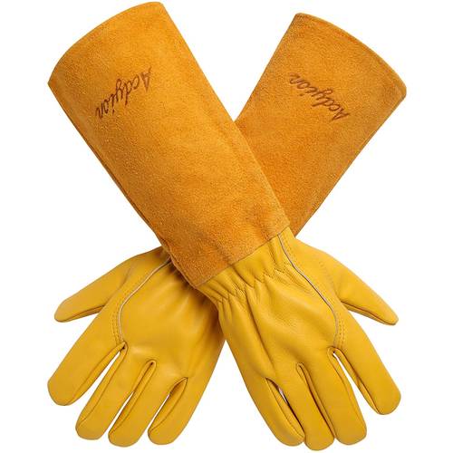Wenn Sie Ihre Rosen schneiden möchten, empfehlen wir lange Handschuhe, die dornenfest sind und die möglichst bis zum Ellenbogen reichen, damit Ihre Arme nicht zerkratzen.