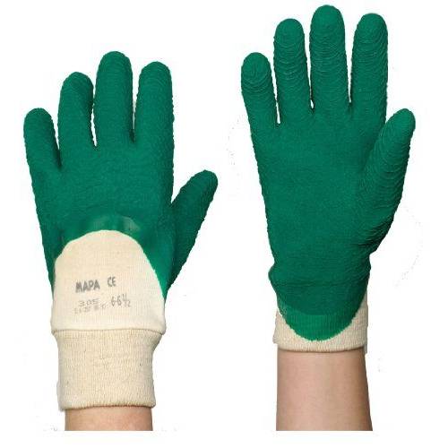 Hinsichtlich der Wasserfestigkeit und Einfachheit der Reinigung wären Gartenhandschuhe aus Gummi oder Latex sicher am besten. Allerdings wären diese nicht sehr atmungsaktiv und Ihre Hände würden beim Arbeiten stark schwitzen. Auch ist das Material nicht sehr robust und z. B. Dornen würden sehr schnell dauerhaften Schaden hinterlassen. Aus diesem Grund sollte Gummi nur gezielt mit verarbeitet werden.