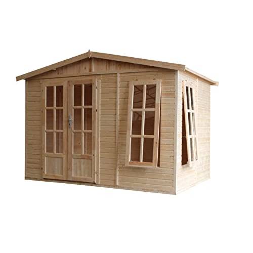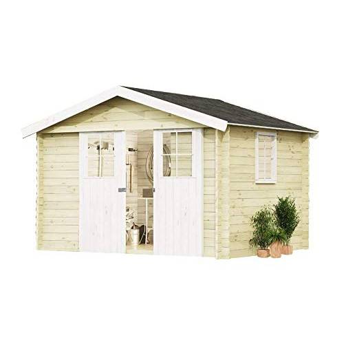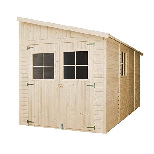 Das Timbela M331 Gartenhaus verfügt über relativ dünne Wände, die nur 17 mm dick und damit leicht zu handhaben sind. Positiv ist außerdem, dass die Tür mit einem Fensterausschnitt ausgestattet ist. Darüber hinaus ist das erforderliche Montagematerial im Lieferumfang enthalten.