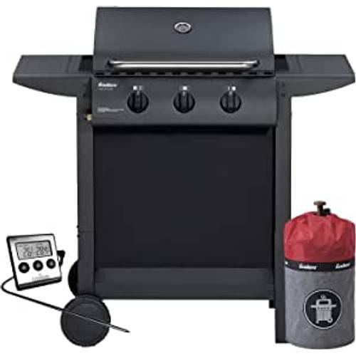 Ein Gasgrill wird mit Gasflaschen betrieben. Deren Zuleitung lässt sich an einem Gasgrill mit 3 Brennern meist individuell anpassen, was es dem Grillenden ermöglicht, in drei unterschiedlichen Temperaturzonen zu grillen.