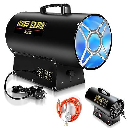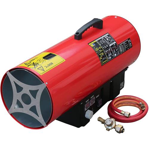 Wenn Sie ein regelbares Gasheizgebläse kaufen, achten Sie auf einen entsprechend starken Luftstrom bei einem leistungsstarken Modell. Das Gebläse muss außerdem mit Strom aus der Haushaltssteckdose versorgt werden. Für große und offene Räumlichkeiten kann der Luftstrom bei 1.000 m³/h und mehr liegen, um eine gute Verteilung der erwärmten Luft zu gewährleisten. Weniger leistungsstarke Gas-Heizlüfter erreichen hingegen Werte von 500 m³/h, was in vielen Fällen ebenfalls genügt. Eine Doppelgarage mit 50 m² und 3 Metern Deckenhöhe umfasst 150 m³ Luft. Mit einem solch kleinen Gas-Heizgerät ließe sich diese Menge in einer Stunde theoretisch dreimal umwälzen. Das sollte für eine gute Erwärmung genügen.