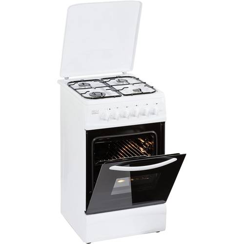 Hier sehen wir einen 4-flammigen Amica-Gasherd, 50 cm, in dem typischen Weiss vieler Standgeräte, das auch zu dem Begriff „Weißware“ geführt hat.