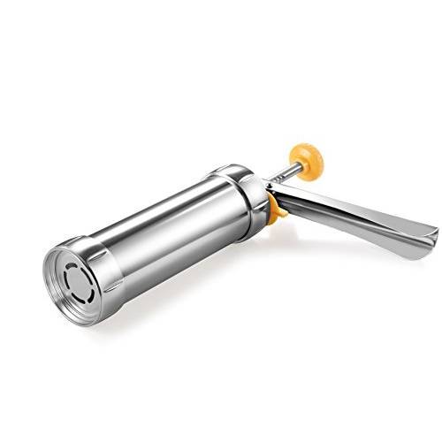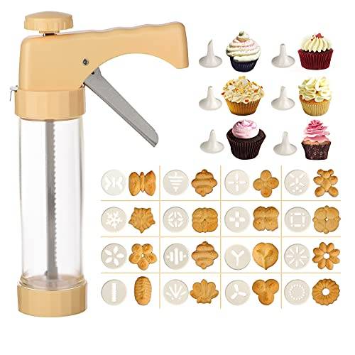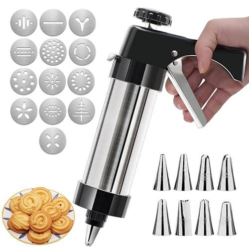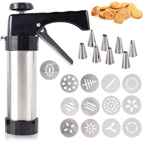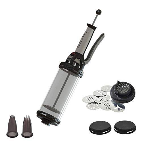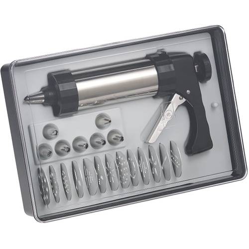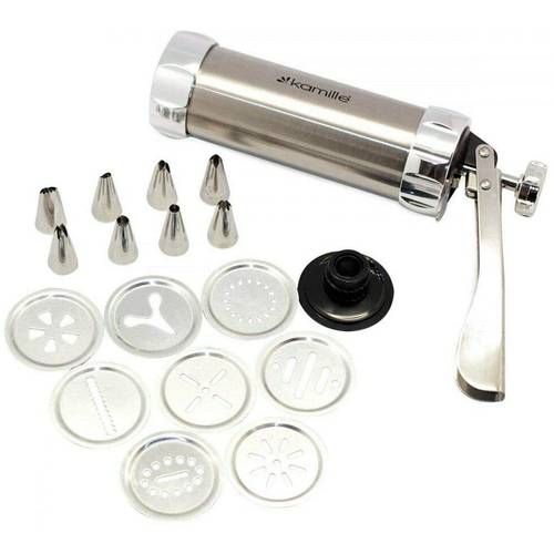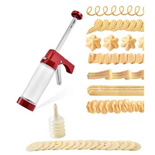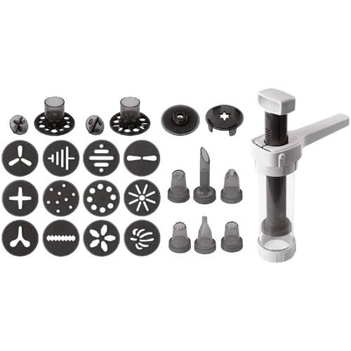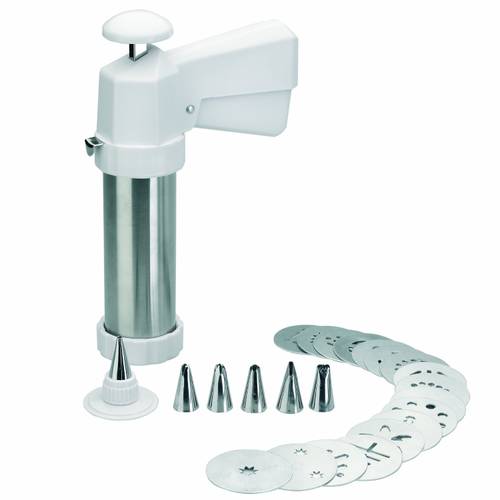 Wenn Sie gerne backen und sich bei Kuchen, Torten und Weihnachtsplätzchen zum nächsten Level der Konditorei begeben möchten, ist eine Gebäckpresse oder eine Gebäckspritze eine sinnvolle Anschaffung, die schier endlose Form- und Dekorationsmöglichkeiten für Cupcakes, Donuts und Geburtstagstorten liefert. Sie können die Gebäckpresse auch im Set kaufen (z.B. eine Gebäckpresse, 20 Aufsätze und 6 Tüllen).