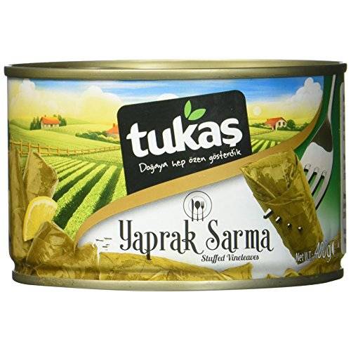 Auf diesem Bild werden uns die gefüllten Weinblätter mit Reis von Dilek in einer 400-g-Dose.